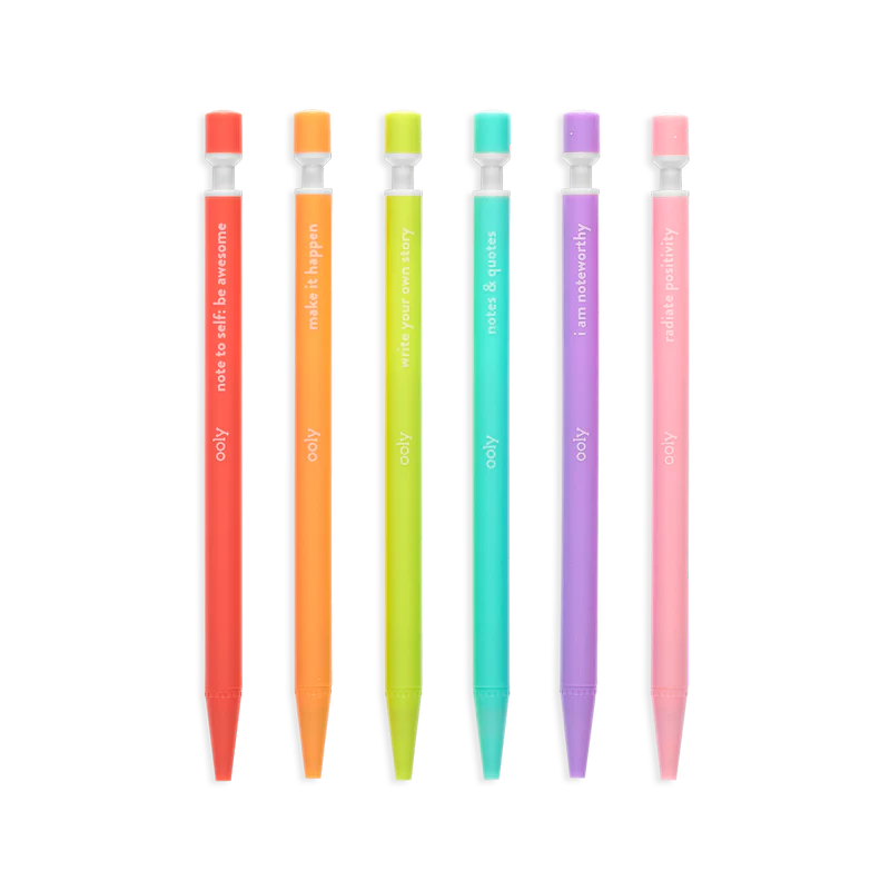 Set of 6 automatic thick pencils. Colorful frames are decorated with a different, positive message.